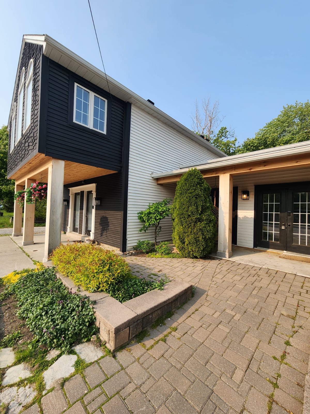 One-of-a-kind mixed property with retail/office space plus two completely separate apartments, each with their own main floor laundry. Located in the heart of quaint Cookstown just 5 minutes from the 400 HWY this property has had many successful businesses over the years. Fully gutted and renovated in 2021 and 2022 all 3 units offer different character to the space. The main commercial unit has huge wide plank wood flooring and a wrap-around covered porch. You enter through garden doors to a glassed in office space with 10-foot ceilings and to your right a ship lapped wall perfect for your business’s logo. Through the Egyptian antique doors to the huge board room with Balinese light fixture (and pot lights) and industrial style tile work. A small kitchenette area and 3-piece bathroom are also in this space as well as a huge storage area with garage door and back door for all of your storage needs. To the north of the storefront, you will find two additional doors. The closest door will take you to a one-bedroom apartment with soaring cathedral ceilings, with sleek modern kitchen and quartz waterfall Cambrian countertops. The bedroom has a massive walk-in closet which could also double as a gym or office space/nursery etc. as well as another closet. The 5-piece bathroom has a huge shower and stand-alone soaker tub with dual bathroom vanity. To the next door you will find an adorable one-bedroom apartment with barn doors, massive shower with floating vanity and main floor laundry. With tons of parking around back as well as on the boulevard in front of the property your tenants or commercial visitors will never be at a loss for parking. Endless opportunities for this property. What business will you open up?