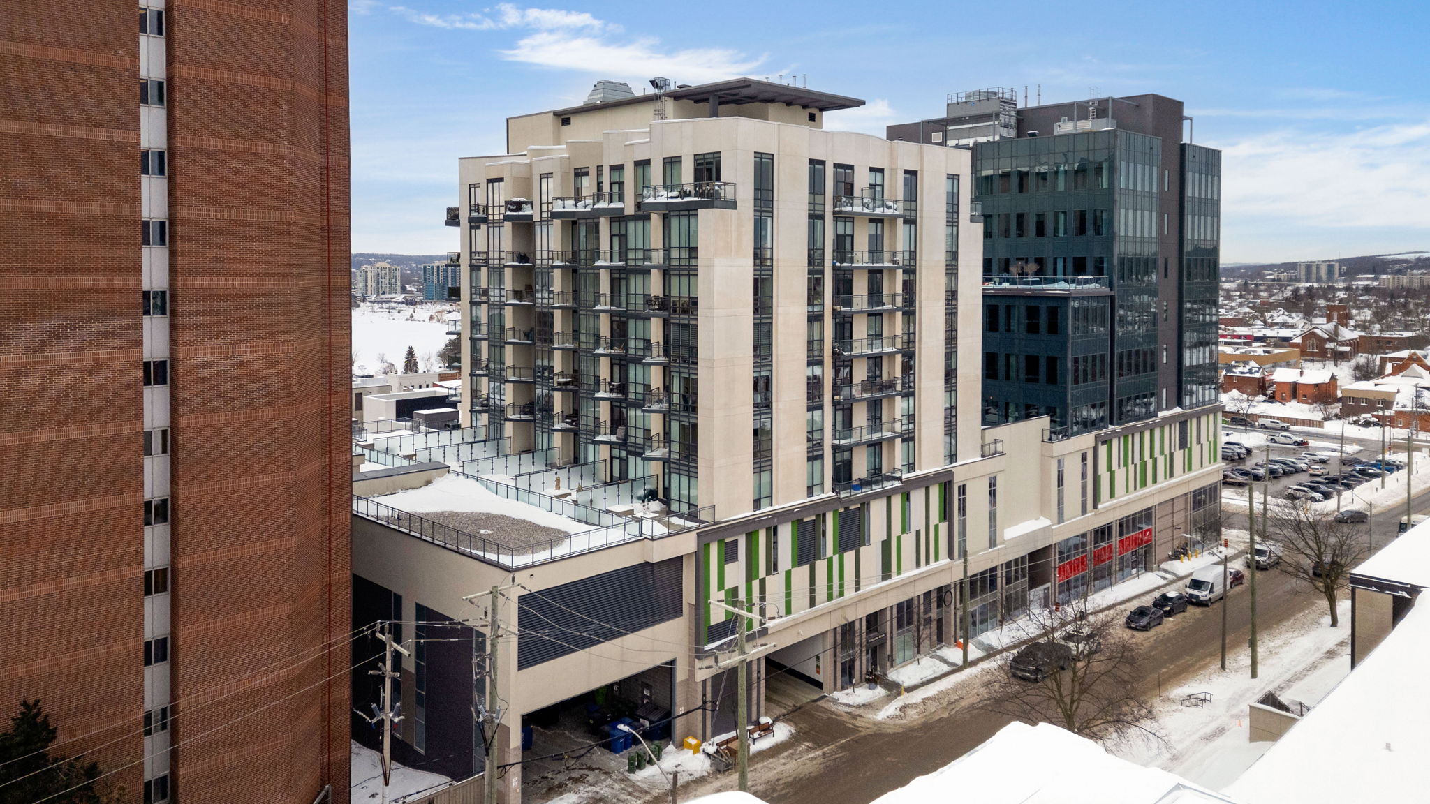 Condo living never looked so good! Tucked privately away this unit boasts tons of natural light from almost every angle with an abundance more windows than most of the buildings models. With over 800 square feet, 9 foot ceilings and original owner this pride of ownership condo bursts with luxury. The second you walk in you will notice the upgraded washer and dryer, laminate flooring and easy flow floor plan. Crisp quartz countertops, tasteful tiled backsplash, open shelving and stainless steel appliances adorn the open concept kitchen with extra deep counter perfect for stools with gossip with friends and an espresso martini. The large living/dining space has floor to ceiling windows and leads to the water facing oversized patio with outdoor decking tiles. Inside the primary bedroom via the barn door there is plenty of room for your furniture, a private 4 piece bathroom with stone countertop and bonus storage above the toilet and massive walk-in closet suitable for any shopaholics needs. Tastefully situated away from the primary bedroom your guest bedroom or office also flush with floor to ceiling windows has a double closet with organizer and is next to a 3-piece bathroom also with stone countertop. With updated lighting throughout and plenty of closet space you won’t even need the locker that is included. Building offers tasteful large welcome seating area as well as work out and party room and massive terrace perfect to lounge around with your favourite book for a change of scenery from your own balcony. Ice skate under the stars at city hall, check out the talented artists at the MacLaren Art Centre, grab a puzzle from the local library, head down to the waterfront for a salsa lesson at Meridian Place, grab some fresh vegetables at the farmers market, walk to the Five Points Theatre, grab a bite to eat, or hit up a roof top patio or night club. Convenience at it’s finest. Welcome home!