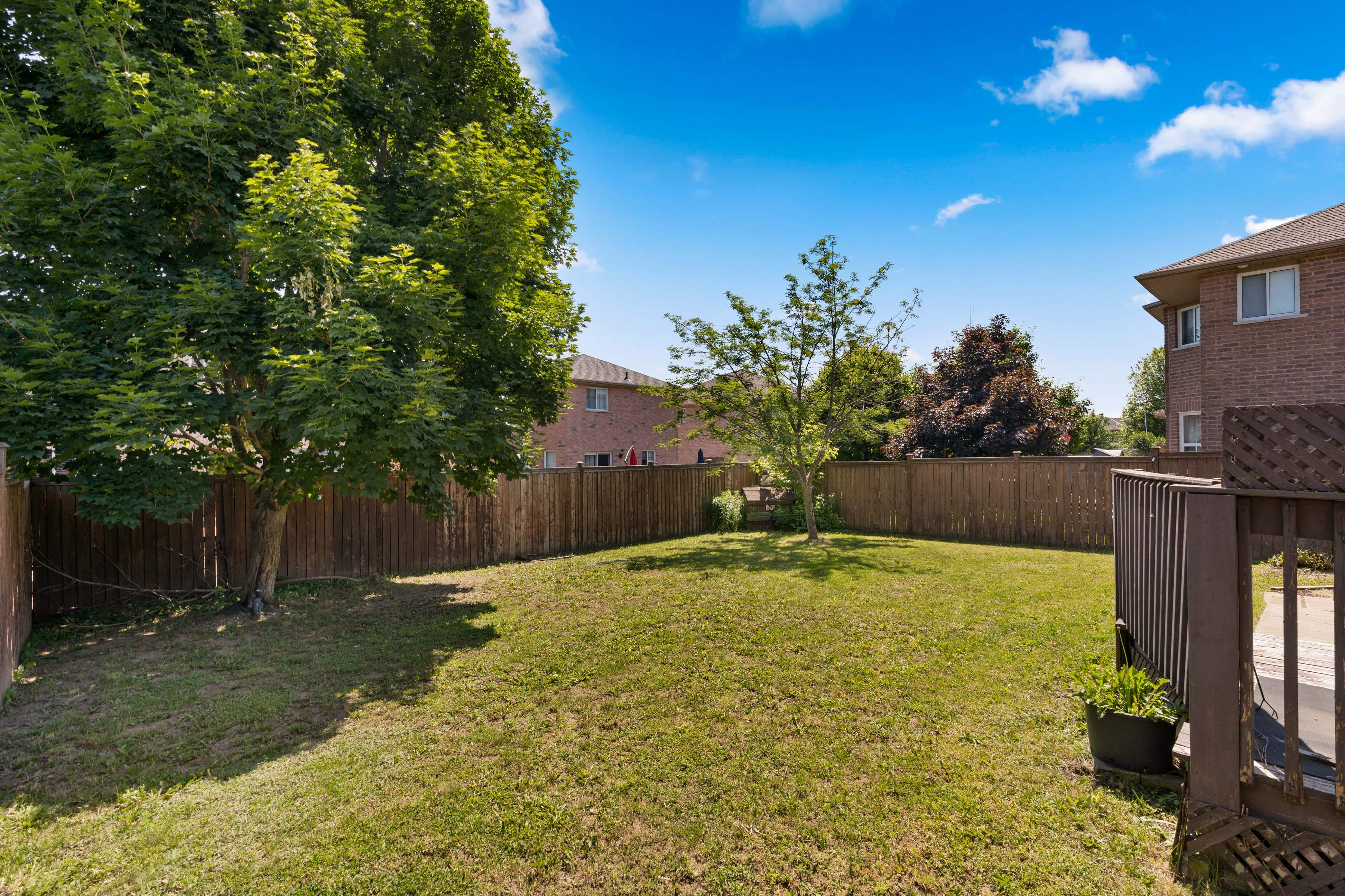 • Huge fully fenced yard : with large deck and inside garage entrance